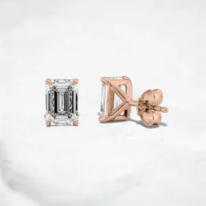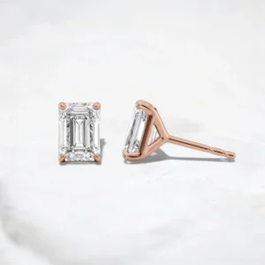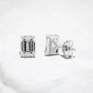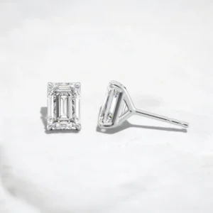Lustre Frame Emerald Cut Moissanite Stud Earrings